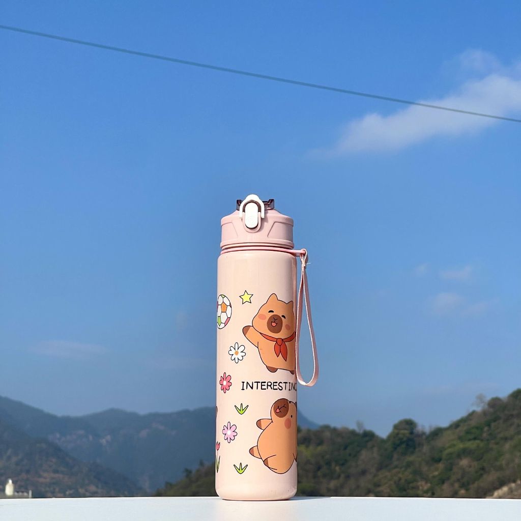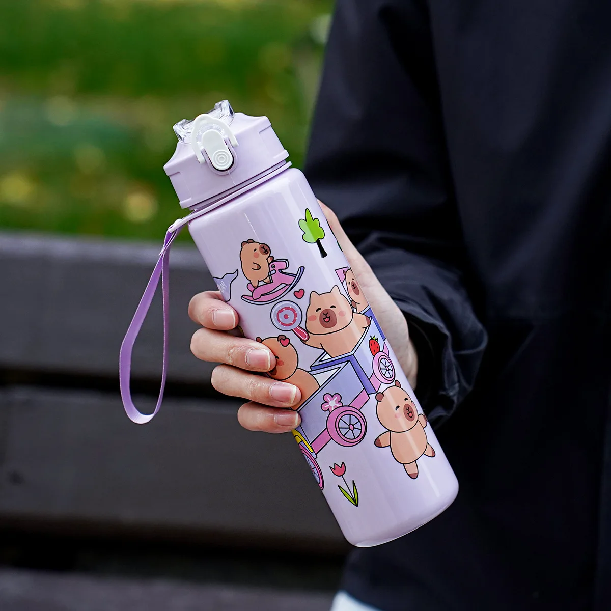 Kapipala PC Material Cute Children's Straw Cup Waterproof High Appearance Level Portable Cartoon Design Handle for Students