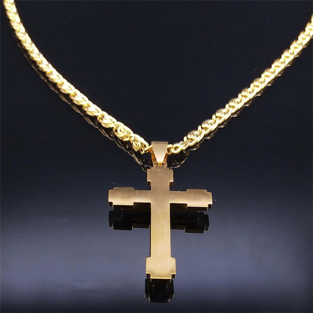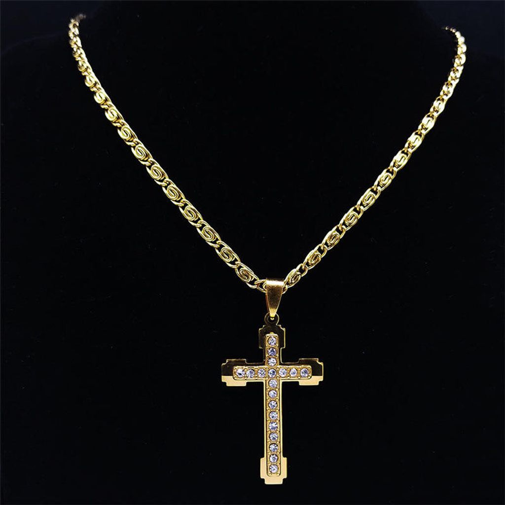 New Hip Hop Christian Cross Pendant Necklace Classic Style Stainless Steel Chain Zircon Crystal Religion Punk Necklaces Gift