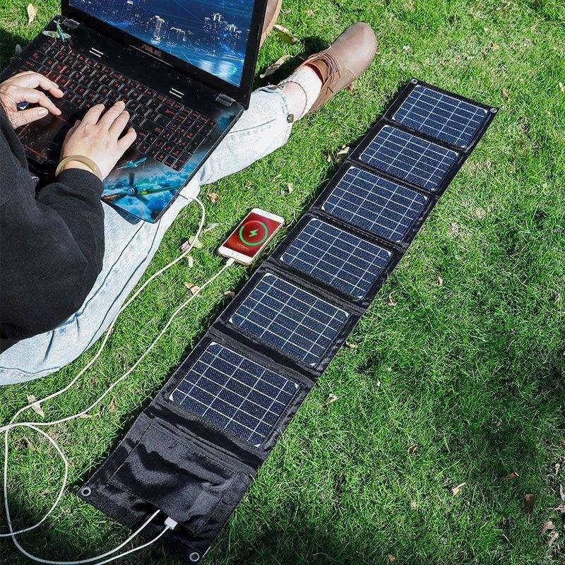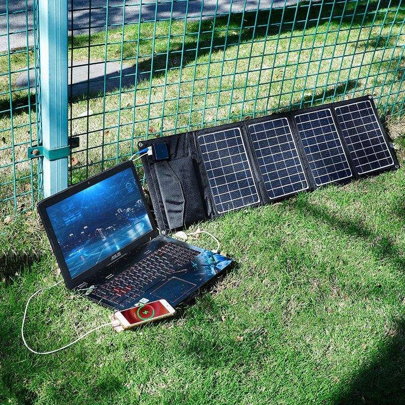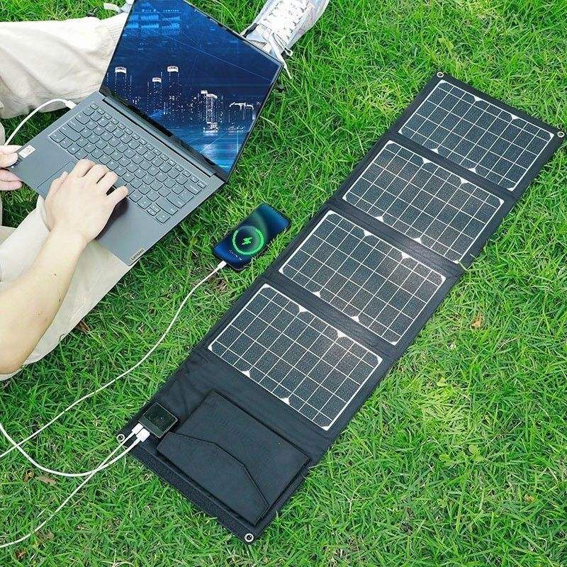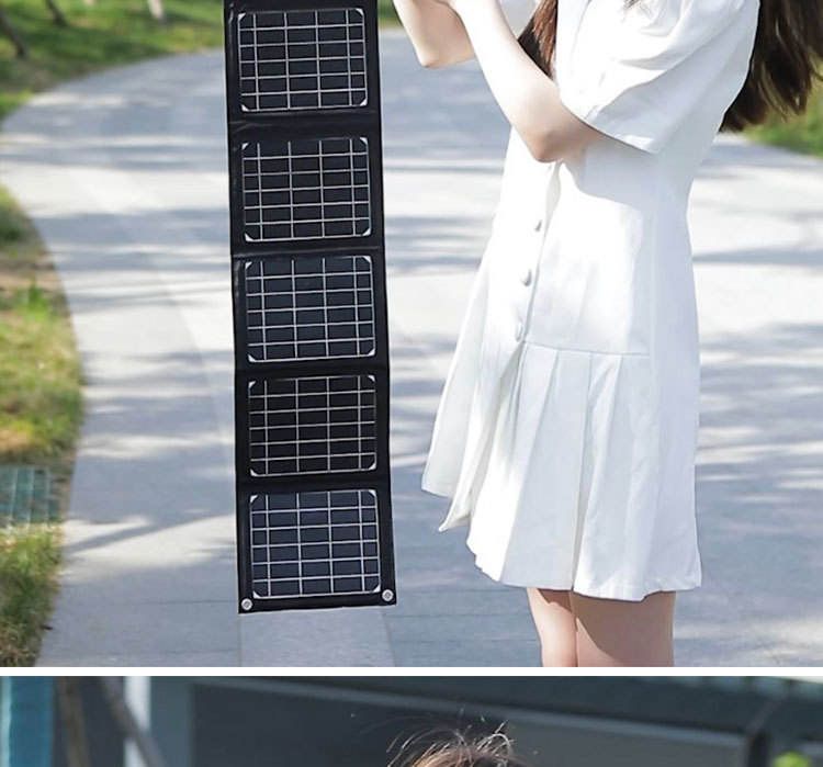 Portable Foldable Solar Charger Power Bank with Voltage Regulation - Fast Charging Solar Panel for Outdoor Mobile Phone Charging: