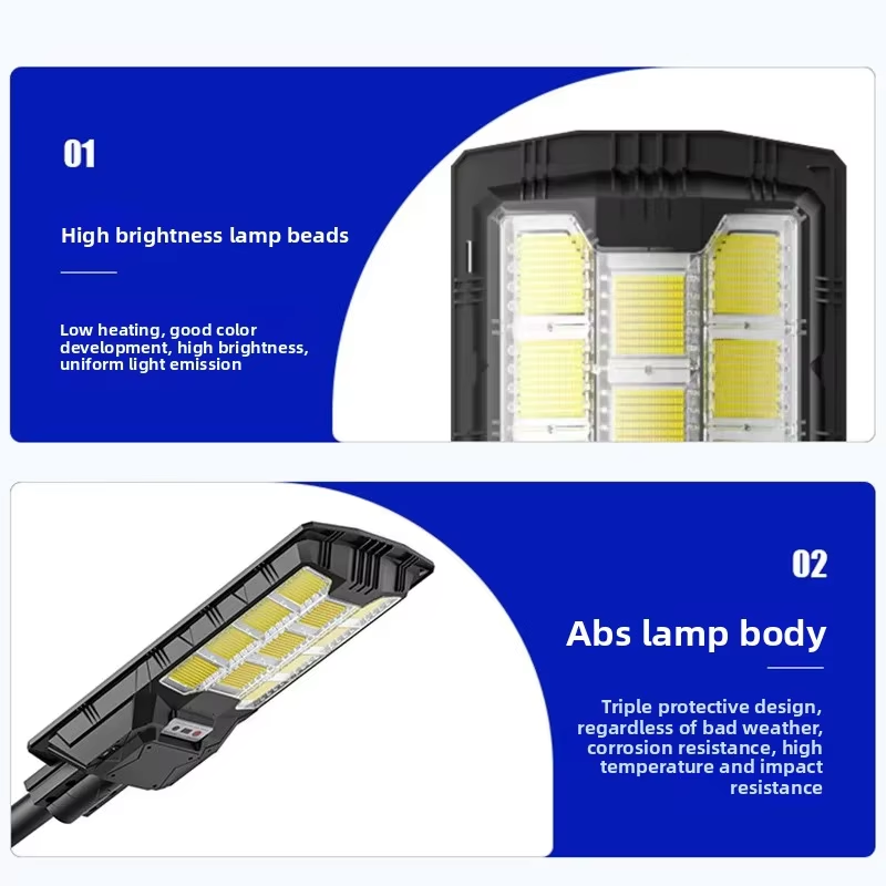 Solar Street Light ABS Waterproof IP65 Wall-Mounted Human Body Induction LED 6000K Daylight Remote Control Highway Outdoor